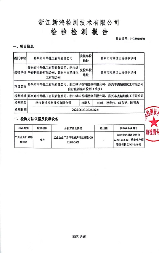 報告名稱(chēng):中華化工2季度噪聲檢測報告