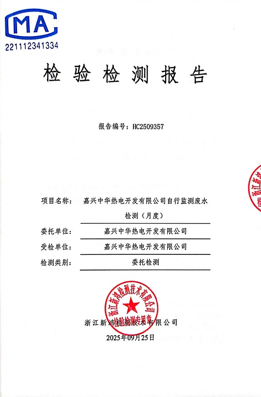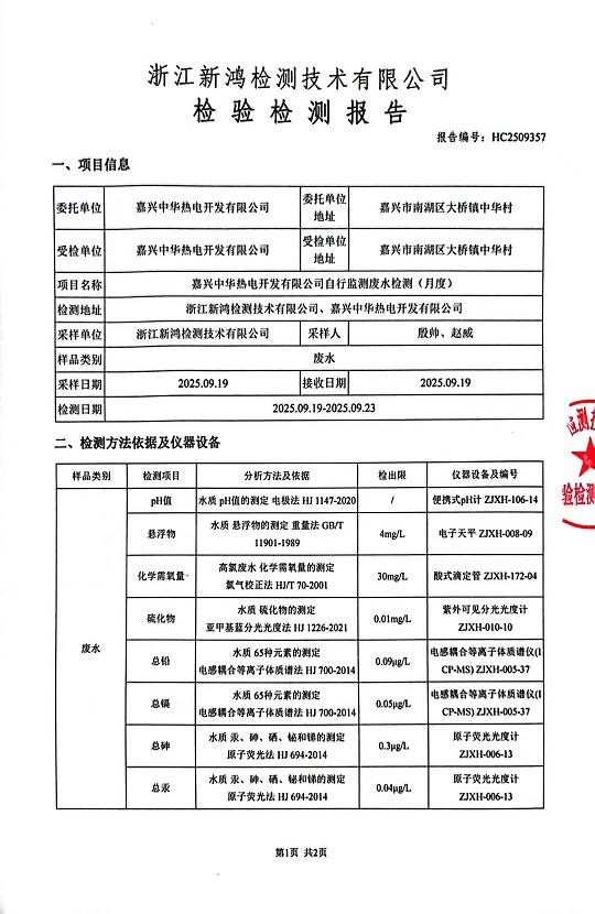 報告名稱(chēng):中華熱電9月廢水檢測報告