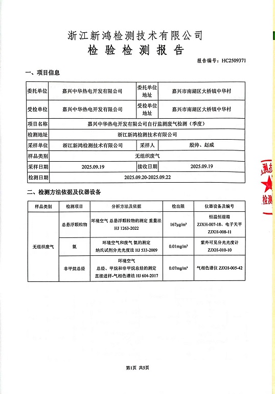 - 中華熱電3季度廠(chǎng)界檢測報告