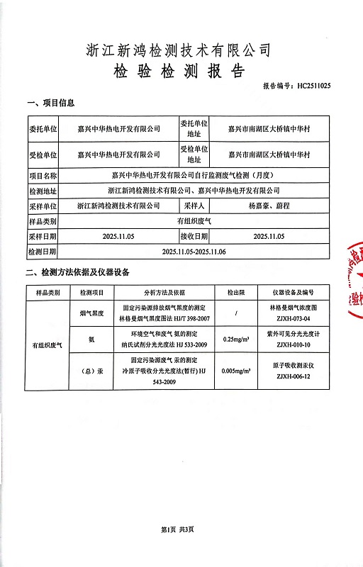 報告名稱:中華熱電11月廢氣檢測報告